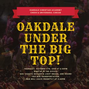 Price includes a light snack and transportation to and from the circus. Plus the Oakdale Christian Academy choir will perform.
